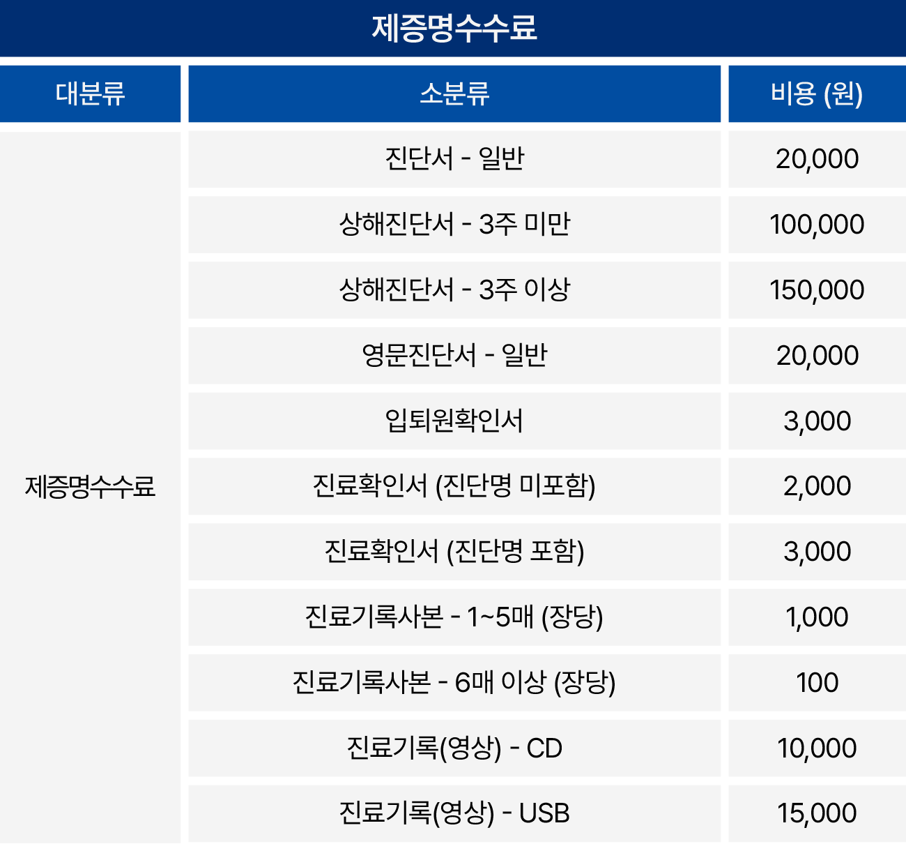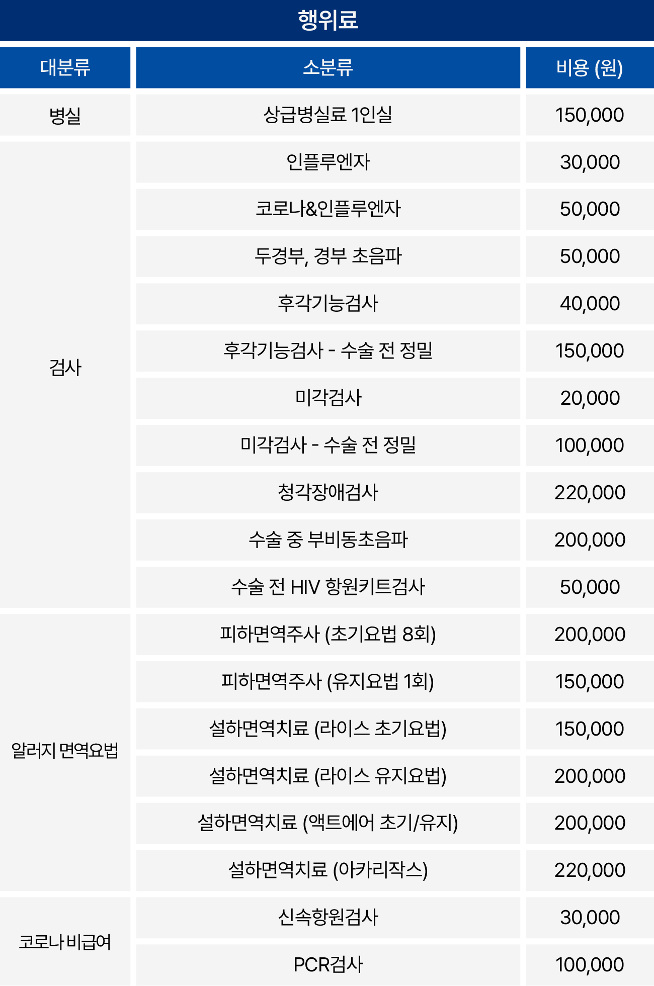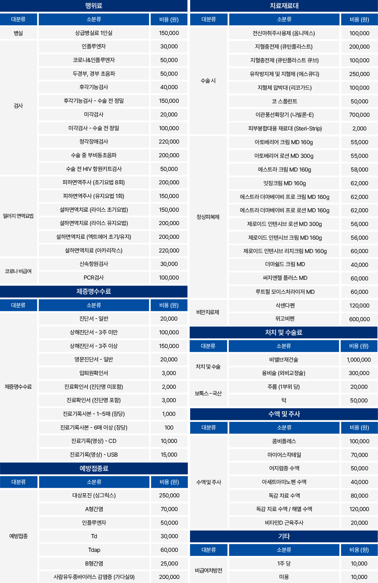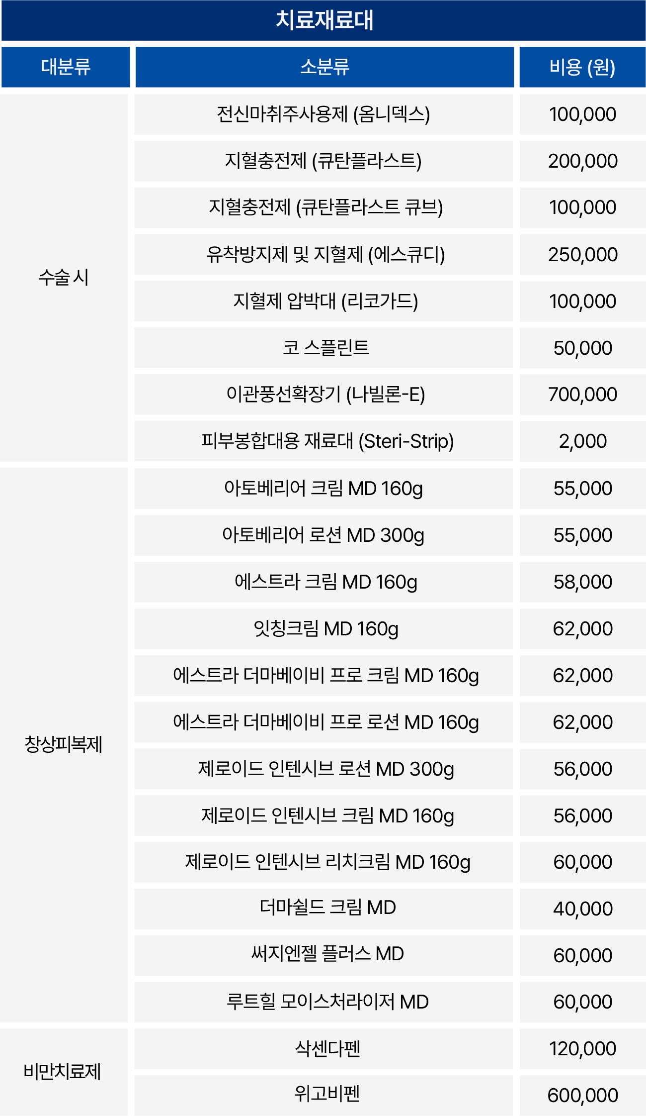 의료법 제45조 및 동법 시행규칙 제42조의 2에 의하여 비급여 진료비용을 고지합니다.